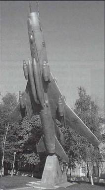 Третий выпушенный истребитель-бомбардировщик Су- 17 (зав. № 86–01), установленный в качестве памятника в Ейске. В нижней части фюзеляжа виден обтекатель трубопровода подачи горячего воздуха на обдув козырька фонаря кабины
