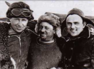Друзья-полярники (слева направо): И.П. Мазурук, И.Д. Папанин, П.П. Ширшов, 1937.
