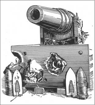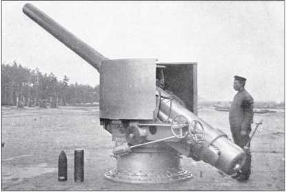 12-см корабельная пушка Круппа на казематной установке с цилиндрическим броневым щитом.