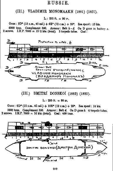Полуброненосные фрегаты типа “Дмитрий Донской” (Сведения о кораблях, опубликованные в английском справочнике “JANE'S FIGHTING SHIPS". 1900 г.)