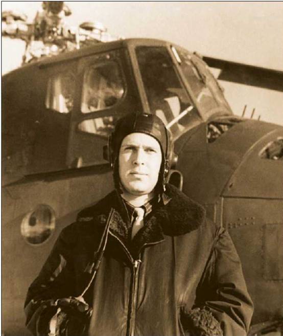Мировой рекордсмен летчик-испытатель Г.А. Алферов у вертолета Ми-4