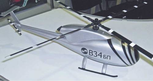 ОАО «Московский вертолетный завод им. М.Л. Миля» представило на нынешней выставке UVS-TECH 2008 некоторые результаты проводимых им научно-исследовательских и опытно-конструкторских работ по двум беспилотным летательным аппаратам вертолетного типа (БЛА ВТ). Во-первых, компания продолжает создание тяжелого беспилотного вертолета среднего радиуса действия Ми-34БП (В-34БП) на базе своего спортивного и патрульно-связного вертолета Ми-34, освоенного в серийном производстве. В-34БП должен стать базовой платформой для различных комплексов с БЛА ВТ.