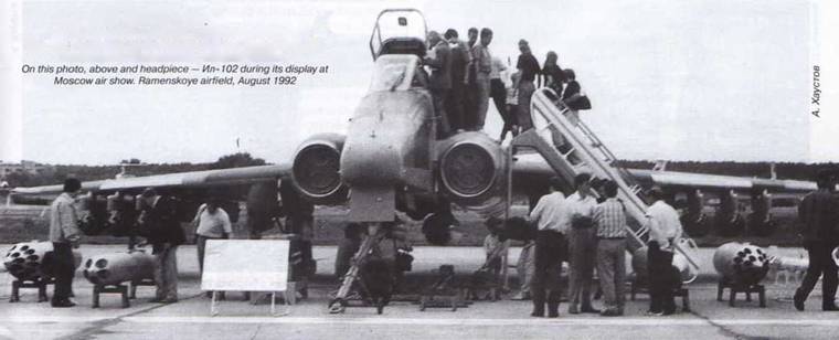 Последний раз заметный интерес Ил-102 вызвал на Мосаэрошоув 1992г. Тогда уже давно не летавший самолет выкатили из ангара, привели в порядок и продемонстрировали в статической экспозиции. Ныне перекрашенная в какой-то странный камуфляж машина стоит на Аллее героев на территории ЛИИ им. М. М. Громова.