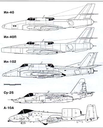 К тому времени уже прошел испытания в институте и небе Афганистана штурмовик Су-25. Он получил высочайшую оценку как у наших летчиков-испытателей В.Н. Музыки и В.В. Соловьева, проверивших машину в афганских условиях, так и у строевых летчиков. Самолет был намного меньше И л-102. но с современными системой управления и прицельным оборудованием. Он спокойно нес 4 тонны бомб и две ракеты ближнего воздушного боя, имел мощную 30-мм пушку, а также был хорошо бронирован. Летчики сразу отметили прекрасный обзор и удобную кабину, выгодно отличавшие его от старшего брата Су-17. Еще большим преимуществом Су-25 было «нежелание» сваливаться в штопор при потере скорости, что особенно важно при работе у земли.