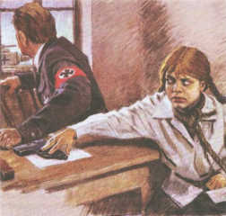 На минуту немец вышел, оставив Зину наедине с часовым. И тут же вернулся: за ним шагал хорошо знавший её предатель, который с наглой улыбкой произнёс: