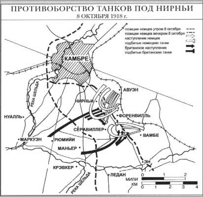 Утром 8 октября около деревни Нирньи британские танки Mk IV (по другим данным, более новые танки Mk V) рот А и С батальона L (12-го батальона британского Танкового корпуса) встретились с германским танковым отделением, оснащенным трофейными Mk IV в составе одного пушечного «самца» и трех пулеметных «самок».