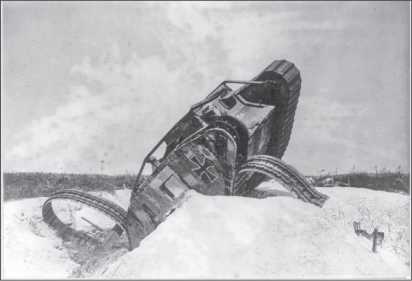 Танк A7V № 542 «Эльфриде», опрокинувшийся при переходе через воронку и ставший трофеем британцев.
