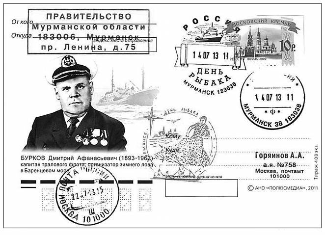 Герман тепло и душевно пишет о своих родных – о маме, отце и братьях. Семья во все времена у поморов была главной, крепкой ячейкой общества. Мать Буркова Анисия Николаевна происходила из древнего поморского рода Железниковых. Как и Дмитрий Афанасьевич, она с детства была приучена к морю. Отец её рыбачил в Сухом море. «Он уже с детских лет начал приучать дочь к рыбацкой доле, – пишет Герман, – Аниса (так звали её домашние) к 8 годам научилась хорошо грести и управлять карбасом, в бурную погоду умело справлялась с парусом». Анисия Николаевна прожила достойную жизнь и в трудное время вырастила троих замечательных сыновей. О себе Герман обычно пишет скупо, но нам известны его дела как на море, так и на суше, и можно сказать, что он явился достойным продолжателем древнейшего поморского рода.