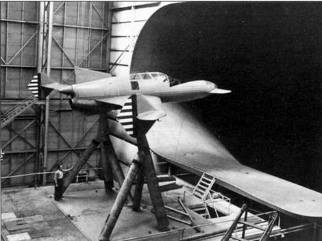 Продувка экспериментального самолета CW24-B в аэродинамической трубе NACA в Лэнгли