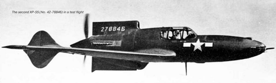 В ноябре 1944 г. ХР-55 № 3 передали на базу Элгин для испытаний вооружения. Через месяц истребитель вернулся в Райт Филд. К тому времени программу разработки истребителя Р-55 уже закрыли. Наступала эра реактивной авиации, а экзотический и капризный поршневой самолет не мог стать достойным соперником реактивных истребителей. Конструкторы предлагали установить на него ТРД, но поддержки не нашли, т.к. новых двигателей было еще очень мало.