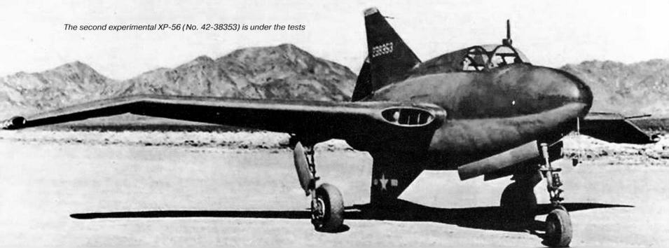Наконец-то 30 сентября 1943 г. Майерс совершил два первых полета на ХР-56. Его впечатления были ужасными. Самолет летел на высоте 1,5 м над поверхностью озера Роджерс на скорости около 270 км/ч, и летчику приходилось постоянно и с большим усилием тянуть ручку на себя. К тому же, машина все время хотела отклониться от выбранного направления.
