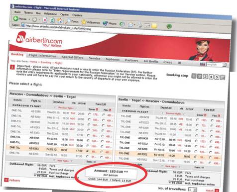 Год назад сотрудник редакции нашего журнала получил задание: опробовать на себе услуги первого отечественного «бюджетного» авиаперевозчика – компании «Скай Экспресс». Эксперимент, что называется, удался. Рейс из Москвы в С.-Петербург обошелся редакции всего в 500 рублей! И несмотря на некоторые накладки с возвращением в столицу (обратный рейс «Скай Экспресса» из-за недозагрузки был отменен, в результате наш редактор вернулся домой с опозданием на пять часов, но все равно затратив на перелет всего 500 рублей), опыт пользования первым российским дискаунтером оставил в целом только благоприятные воспоминания (подробный отчет о том путешествии можно прочесть в журнале «Взлёт» №8-9/2007, с. 94-96). Поездка на недавний авиасалон в Берлине предоставила нам возможность снова опробовать нюансы авиационного «лоукоста», правда теперь эксперимент решено было провести, воспользовавшись услугами уже не российского, а западного дискаунтера – германской компании «Эйр Берлин». Своими впечатлениями о «лоукосте по-немецки» делится директор по маркетингу нашего издательства Георгий Смирнов.