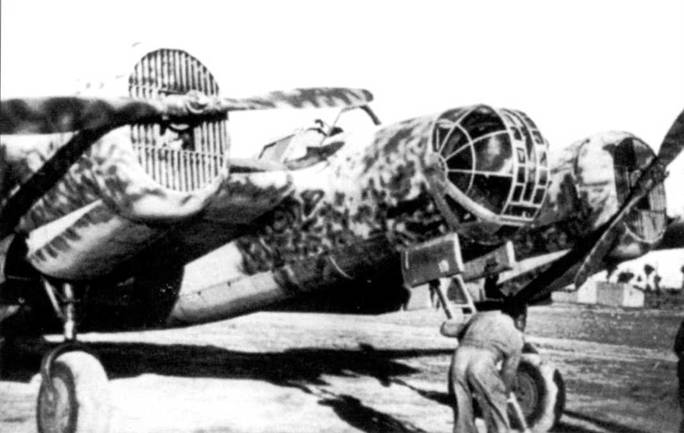 На снимке хорошо видны вертикальные заслонки радиаторов двигателей серийного бомбардировщика СБ. Отверстия под втулки винтов – прямоугольные. Интересный факт – камуфлированы лопасти винтов, что крайне необычно! Дополнительная трубка Вентури поставлена по правому борту в носовой части фюзеляжа, дополнительные трубки Вентури ставились па всех серийных бомбардировщиках. Этот СБ прибыл в Испанию с первой партией бомбардировщиков. Самолет получил регистрацию «20W-1» и поступил на вооружение 13-го бомбардировочного авиаполка, который базировался в Лос-Лианосе.