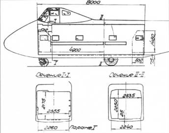 Носовая часть фюзеляжа с габаритами грузовой кабины