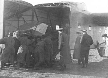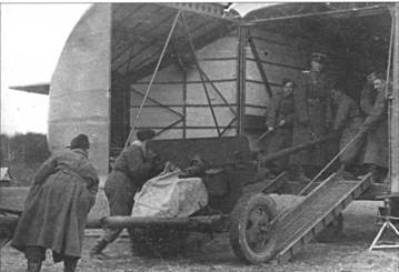 Погрузка 57-мм противотанкового орудия в Як-14 через переднюю грузовую дверь