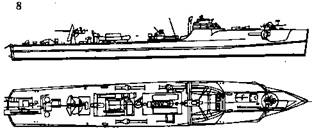 10. Дополнительные данные: с 1944 г. многие торпедные катера дополнительно получали на вооружение 40-мм и 20-мм зенитные автоматы или на них устанавливали один 30-мм и шесть 20-мм автоматов.