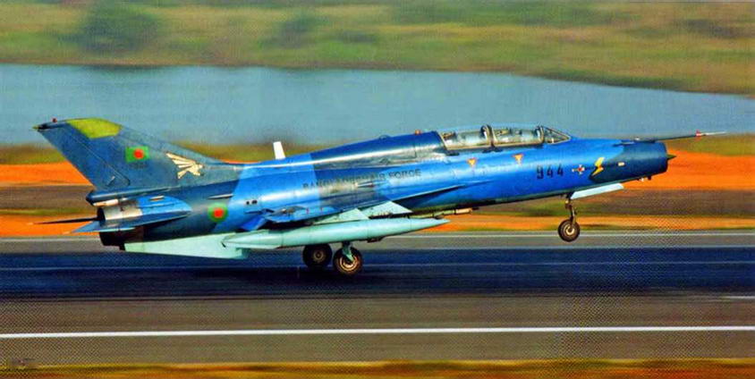 Летом 1973 г. ВВС Бангладеш получили шесть сверхзвуковых истребителей МиГ-21МФ, а также две "спарки" МиГ-21УМ, поставленные СССР. Кроме того, из Советского Союза в 1970-х гг. прибыло несколько военно-транспортных самолетов Ан-26 и Ан-24, а также вертолеты Ми-8. Эта группировка и составила "костяк" бенгальской военной авиации.