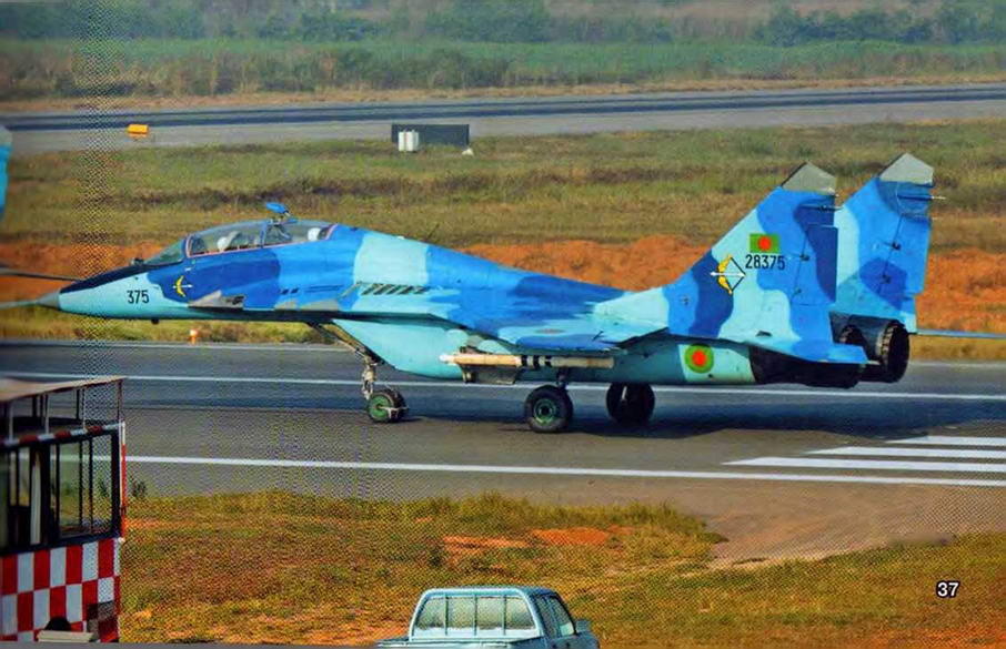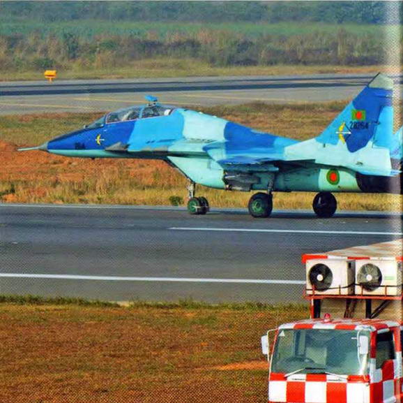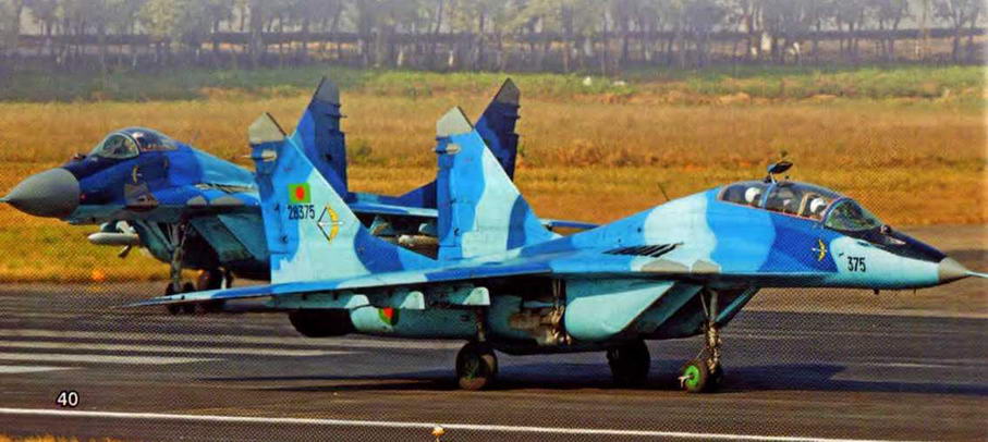 Шесть истребителей типа МиГ-29 и два учебно-боевых самолета МиГ-29УБ ВВС Бангладеш получили из России в 1999 г. "МиГи" 4-го поколения были переданы в 8-ю эскадрилью "Vigilance, Valour, Victory". Они пришли на смену истребителям и УТС F-6 (МиГ-19) и FT-6.