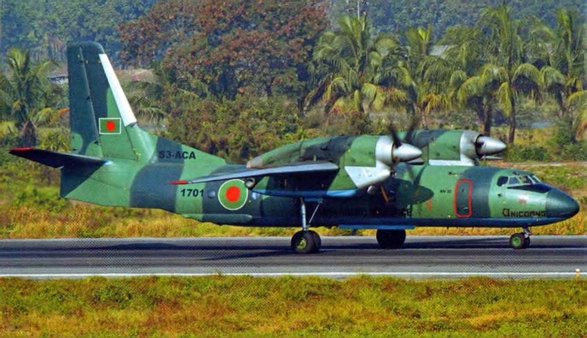 В 1989 г. ВВС Бангладеш закупили в СССР два легких военно-транспортных самолета Ан-32. Еще один самолет данного типа был приобретен на Украине в 1995 г. Следует сказать, что эти машины могут использоваться и как бомбардировщики, так как на каждой из четырех точек их внешней подвески можно разместить авиационные бомбы калибром до 500 кг.