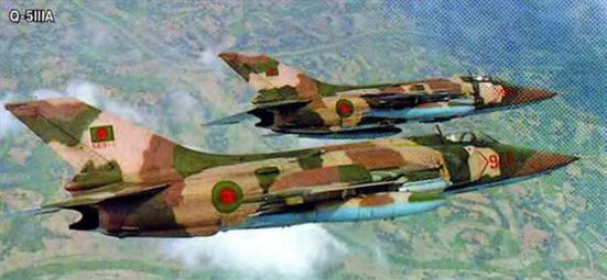 В 1986 г. ВВС Бангладеш приобрели у Китая 16 трансзвуковых истребителей-бомбардировщиков Q-5IIIA (А-5С Fantan), являющихся экспортным вариантом самолета Q-5, который, в свою очередь, представляет собой глубокую модернизацию советского фронтового истребителя МиГ-19. Сегодня, поданным СМИ, в боеспособном состоянии находится лишь девять машин этого типа, прошедших в 2006-2009 гг. ремонт и частичную модернизацию (как на авиаремонтных предприятиях Китая, так и в самой Республике Бангладеш). Предполагается, что после проведенного ремонта эксплуатация "Фантанов" может быть продолжена до 2017-2021 гг.