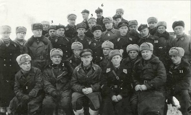 Командование 812-го ИАП. В первом ряду слева на право: Т.Пасынок, А.Еремин, СЛепилин. Во втором ряду: Д.Николанков, И.Батычко, Ф.Свеженцев.