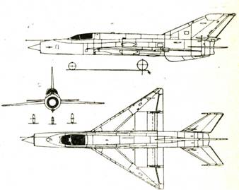 Конструктивные особенности. Дальнейшее развитие истребителей МиГ-21ПФМ и МиГ-21С. Увеличена емкость накладного топливного бака.