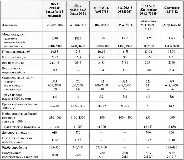 Сравнительные данные серийных истребителей Як-3 и Ла-7 с иностранными самолетами, испытанными в НИИ ВВС