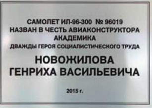Самолету Ил-96-300, входящему в состав специального летного отряда (СЛО) «Россия», присвоено имя выдающегося советского и российского авиаконструктора Генриха Новожилова. Церемония присвоения имени прошла в присутствии самого Генриха Васильевича 30 октября в аэропорту «Внуково».
