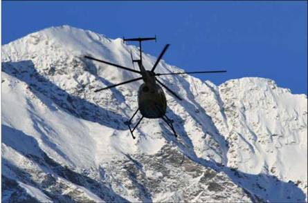 От себя лично добавлю, что для работы в горах при проведении спасательных операций прекрасно подходит и вертолет NH-500. Я на нем летал, поэтому могу говорить смело. Вертолет маленький, вмещает четырех человек (два пилота и два пассажира), но обширное остекление кабины обеспечивает прекрасный обзор, что значительно облегчает поиск.