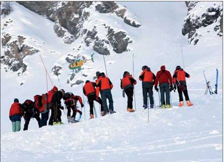 Поиск людей велся с помощью цифровой системы связи ARIA и лавинного приемопередатчика Barrivox VS2000, подвешенного к вертолету на тросе. Этот приемопередатчик в считанные минуты позволяет за счет специально направленной антенны с достаточно высокой степенью точности обнаружить пострадавшего под многометровым слоем снега. Трудно даже предположить, сколько времени заняли бы подобные поиски, если бы их вели спасатели, передвигающиеся по снегу на лыжах или просто пешком.