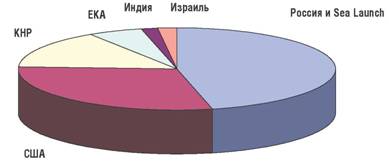 Несмотря на этого, Россия продолжает уверенно держать ведущее место в мире по космическим запускам. В 2004 г. Российской Федерацией или с ее участием произведено 26 (включая испытательный запуск «Союз-2») запусков ракет-носителей, которые вывели на околоземные орбиты 36 космических аппаратов (19 из них принадлежат России). Учитывая, что всего в мире в 2004 г. осуществлено 56 запусков РН (включая аварийные), доставивших в космос 72 КА (в том числе на нерасчетные орбиты), доля запусков с участием России составляет 48% от общего числа запущенных ракет и 49% КА. По этим показателям Россия заметно опережает США (29% запусков РН и 23% выведенных на орбиту КА) и КНР (14% запусков и 14% выведенных КА). Замыкают этот своеобразный космический рейтинг 2004 г. ЕКА (5 и 12% соответственно) и Индия (примерно 2 и 1%), а единственный осуществленный Израилем запуск оказался аварийным.В перспективе доля России в коммерческих запусках может составить 22-25%. Очередной «бум» на этом рынке ожидается через 3-4 года, когда придет время замены геостационарных спутников. К 2007-2008 гг. истечет ресурс большинства таких аппаратов. В этот период ожидается 22-25 запусков на геостационарную орбиту в год. Следует учитывать, что к тому времени услуги запуска будут предлагать Индия, Япония и, возможно, Китай. Поэтому сохранение одной четвертой доли этого рынка является максимально возможным потенциальным результатом для российской космонавтики.
