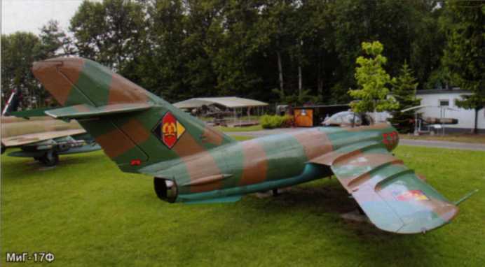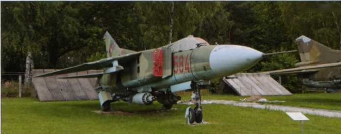 Рядом с МиГ-21 стоят три истребителя МиГ-23 (УБ, БН и МФ). МиГ-23МФ имеет внешнюю подвеску – блоки НУРС, которые установили сотрудники музея своими силами после реставрации самолета. Также невозможно пройти мимо новенького и ярко сверкающего МиГ-17Ф, который совсем недавно был отреставрирован и получил оригинальную окраску ВВС ГДР.