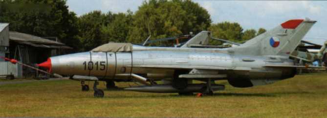 Также в этом плане любопытен МиГ-21ФР-13 с бортовым номером 1015. Это тактический разведчик, построенный в ЧССР в 1971 г. на основе МиГ-21Ф-13. Так что вариант ФР – это чешское нововведение. После реставрации в музее самолет был окрашен в оригинальный серый цвет, который использовался в начале выпуска, хотя в конце эксплуатации эти МиГи окрашивались и в зеленый цвет.