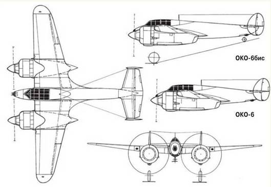 2) Заводские испытания и доводка весьма затянулись, что не дает возможности дать исчерпывающие заключения по самолету с таким мощным вооружением». Предлагалось ускорить постройку второго экземпляра ОКО-6 с редукторными моторами и проведение его заводских испытаний.