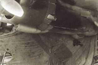 Носовая пулеметная установка откинута вправо. Носовой обтекатель снят