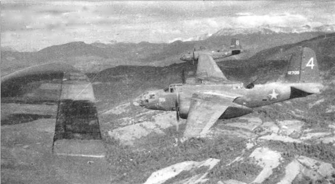 «Бостоны» 13-го гвардейского дальнебомбардировочного полка, приданного ВВС Черноморского флота, идут на выполнение боевого задания. Юго-западное побережье Крыма, весна 1944 г. Фото из архива Г. Петрова.