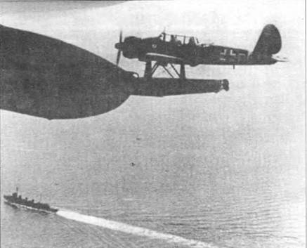 Поплавковый Ar196 над румынскими эсминцами. Несмотря на то, что эти самолеты в середине 40-х уже было трудно назвать скоростными, для экипажеи торпедоносцев, действовавших, как правило, без истребительного сопровождения, их присутствие было весьма неприятно. И было от чего: две крыльевые 20-мм пушки и два синхронных 7,92-мм пулемета, наряду с максимальной скоростью 320 км/ч делали их довольно опасными для Ил-4, выходивших в торпедную атаку на скорости около 300 км/ч.