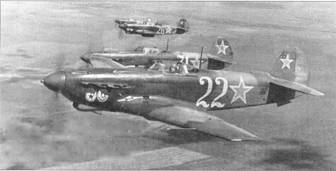 Як-9Д из состава 6-го Гв. ИАП ВВС ЧФ. Истребитель с бортовым №22 принадлежит Герою Советского Союза старшему лейтенанту М.Грибу, а с №31 – лейтенанту В.Воронову.
