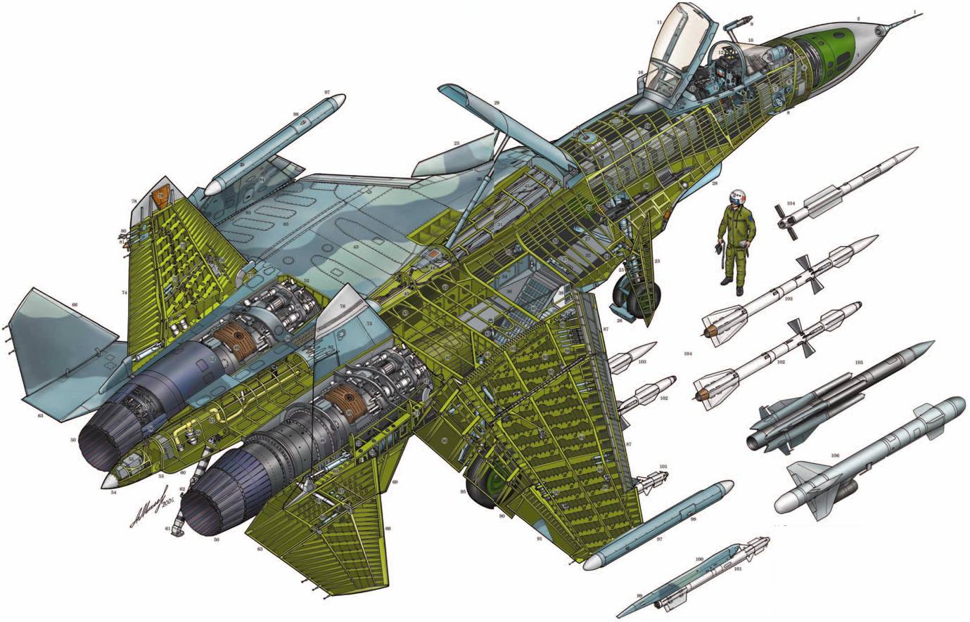Предполагаемая компоновка корабельного истребителя Су-33К, который может быть заказан ВМС КНР (рисунок Алексея Михеева)