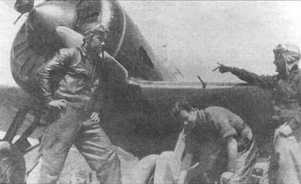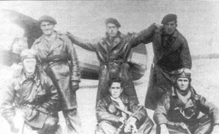 «Волонтеры свободы» из состава 1-й эскадрильи «чато» капитана Лакалле. Лейтенант Гёрардо Жиль в кабине И-15 (внизу). На фото справа американские пилоты ("сидят) Висенте Осино, Гарольд Даль и Фрэнк Тинкер со своими механиками.