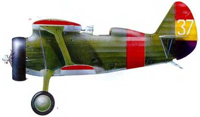3* 3-я эскадрилья И-15 под командованием капитана Ивана Копца была направлена на Арагонский фронт на аэродром Саринина (Sarinena) для противодействия появившимся там истребителям Не51 из состава франкистских эскадрилий 1 -Е-2 и 2-Е-2.