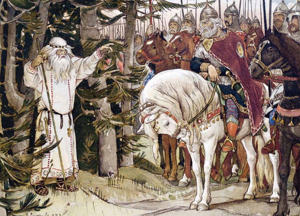 Князь Олег и волхв. Пророчество о смерти Олега. Легенда о Вещем Олеге в иллюстрациях В. М. Васнецова.
