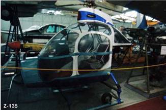 В музее сохранилась пара немногих созданных в Отроковице вертолетов. В 1960 г. был разработан Z-35, при первом же полете которого выяснилась нехватка мощности силовой установки. Это не помешало установить на нем национальный рекорд высоты, когда в 1962 г. пилот компании Берг поднялся на высоту 5345 м. Вертолет разбился при испытаниях в Высоких Татрах. Новый вертолет Z-135 с более мощным двигателем полетел только в 1965 г. Восстановленный Z-135 напоминает об экспериментах чешских специалистов. Несмотря на это, завод "Moravan" все-таки строил серийные двухместные вертолеты НС-02 и НС-102 Heli Baby в 1958-1963 гг.