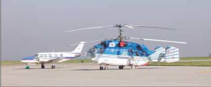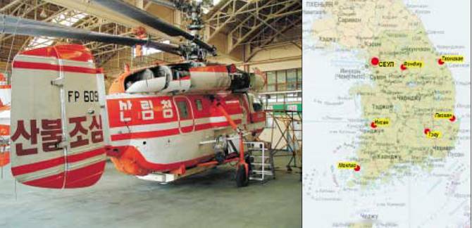 Корея поистине становится вертолетной страной. Только на аэродроме Кимпо базируются около 50 вертолетов самых различных марок: от 40-летнего «дедушки» S-55 до современного S-76C и Hughes-500 системы NOTAR, среди них – 8 вертолетов Ка-32.