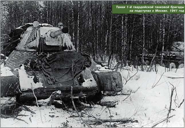 Танки 1-й гвардейской танковой бригады на подступах к Москве. 1941 год.