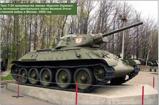 Танк Т-34 производства завода «Красное Сормово» в экспозиции Центрального музея Великой Отечественной войны в Москве. 2005 год.