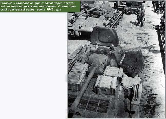 Готовые к отправке на фронт танки перед погрузкой на железнодорожные платформы. Сталинградский тракторный завод, весна 1942 года.