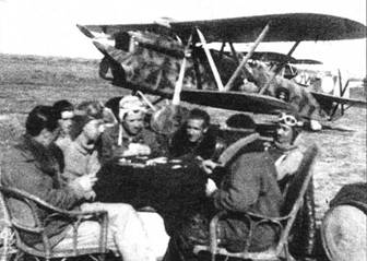 Де Грюнн с сослуживцами обсуждают прошедший бой