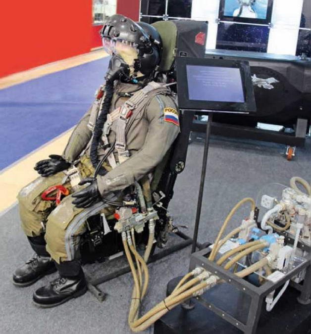 Комплект снаряжения летчика, катапультное кресло и кислородная система ПАК ФА, продемонстрированные НПП "Звезда" на МАКС-2015