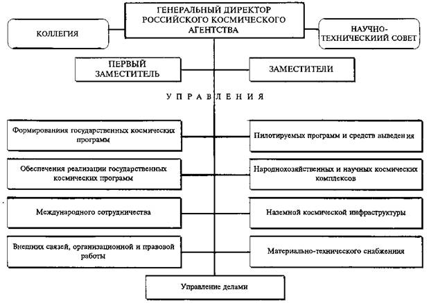 Организационная структура центрального аппарата Российского космического агентства.